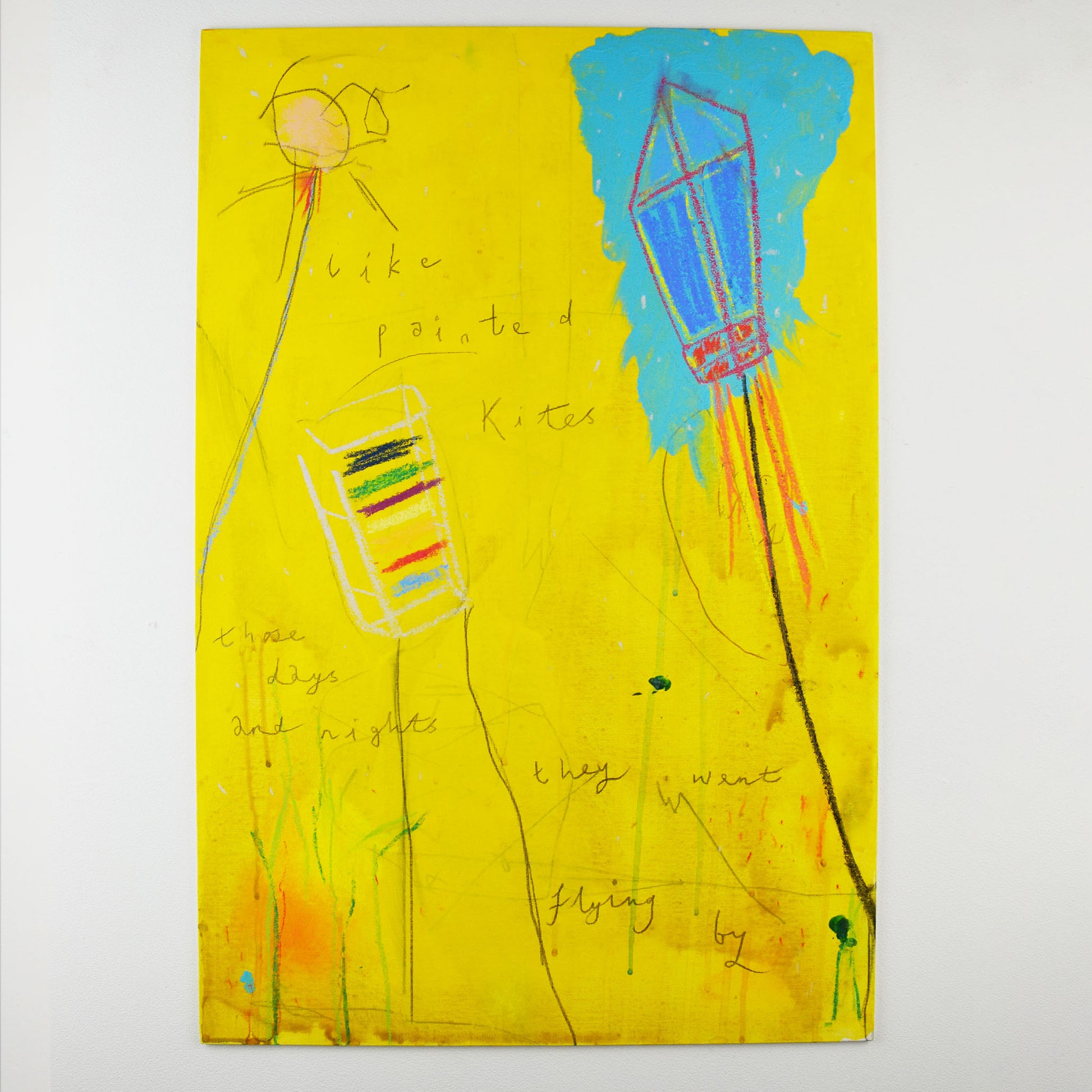 Acrylic pencil and oil pastel on canvas board